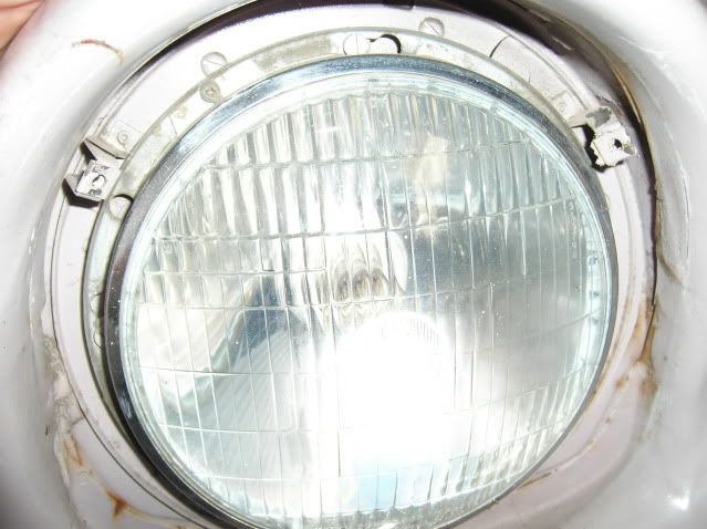 Cal dont you just push the headlight in and twist it so the flat headed screws actually go through the holes .